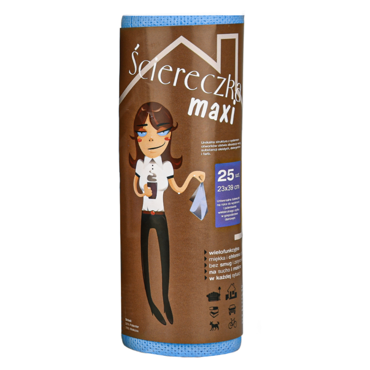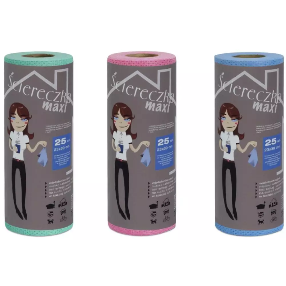 Produkty Maxi są dostępne w opakowaniach z gotowymi pociętymi ścierkami lub nawinięte na poręczną rolkę.